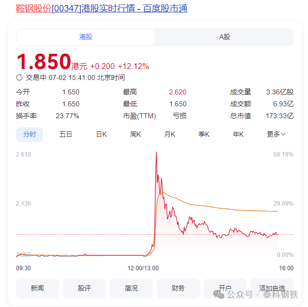 7月2日港股钢铁板块集体异动。