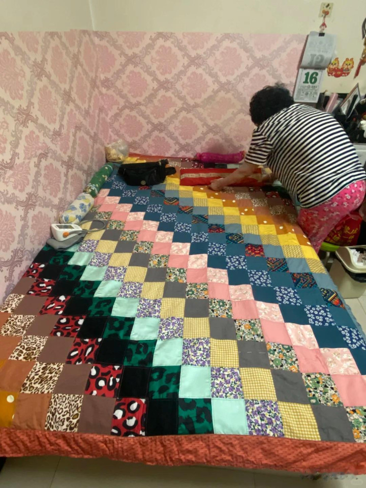 也可以将不穿的旧t恤裁剪成一样大小的布块,然后缝在一起当做床单或者被套,因为都是柔软舒适透气的布料,所以当做床单被套非常合适。