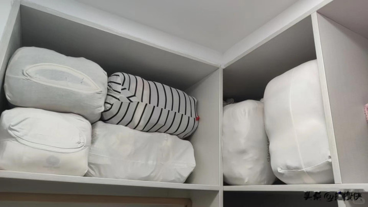 不穿的旧t恤可以将t恤直接套在被子当做被子收纳袋。放在衣柜当中不占地方又可以防尘。