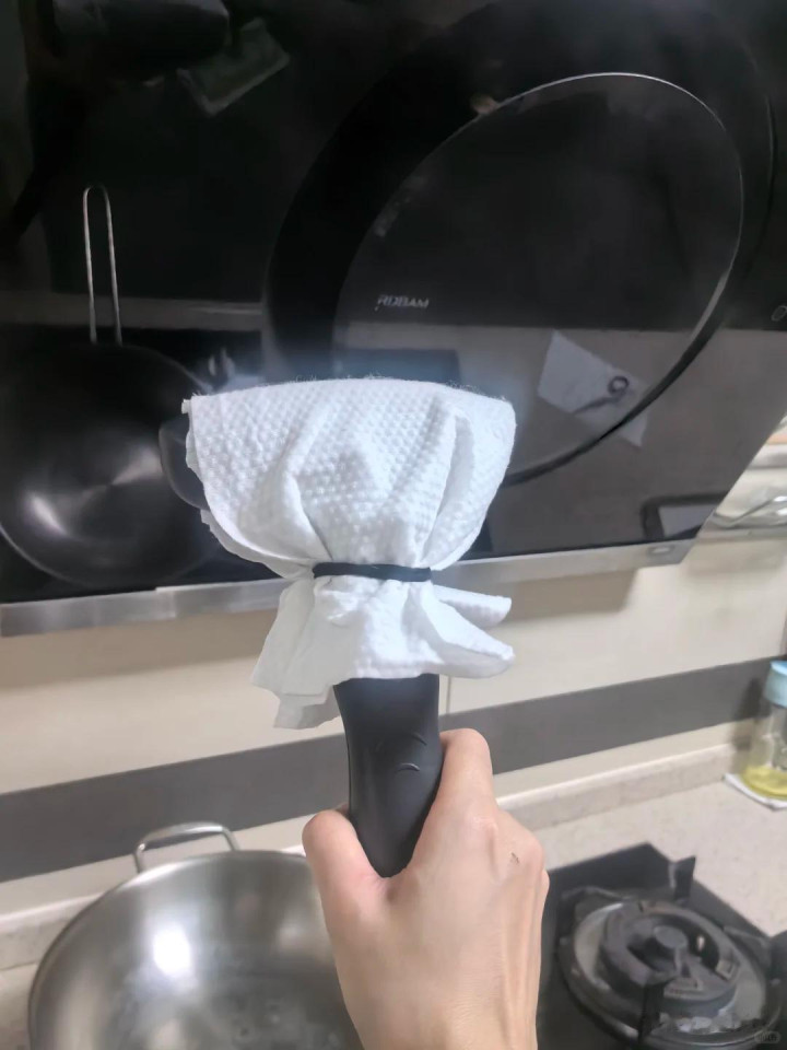 利用挂烫机喷出来的蒸汽清洁厨房的油垢,效果特别好,找一块抹布或者是用过的一次性洗脸巾,